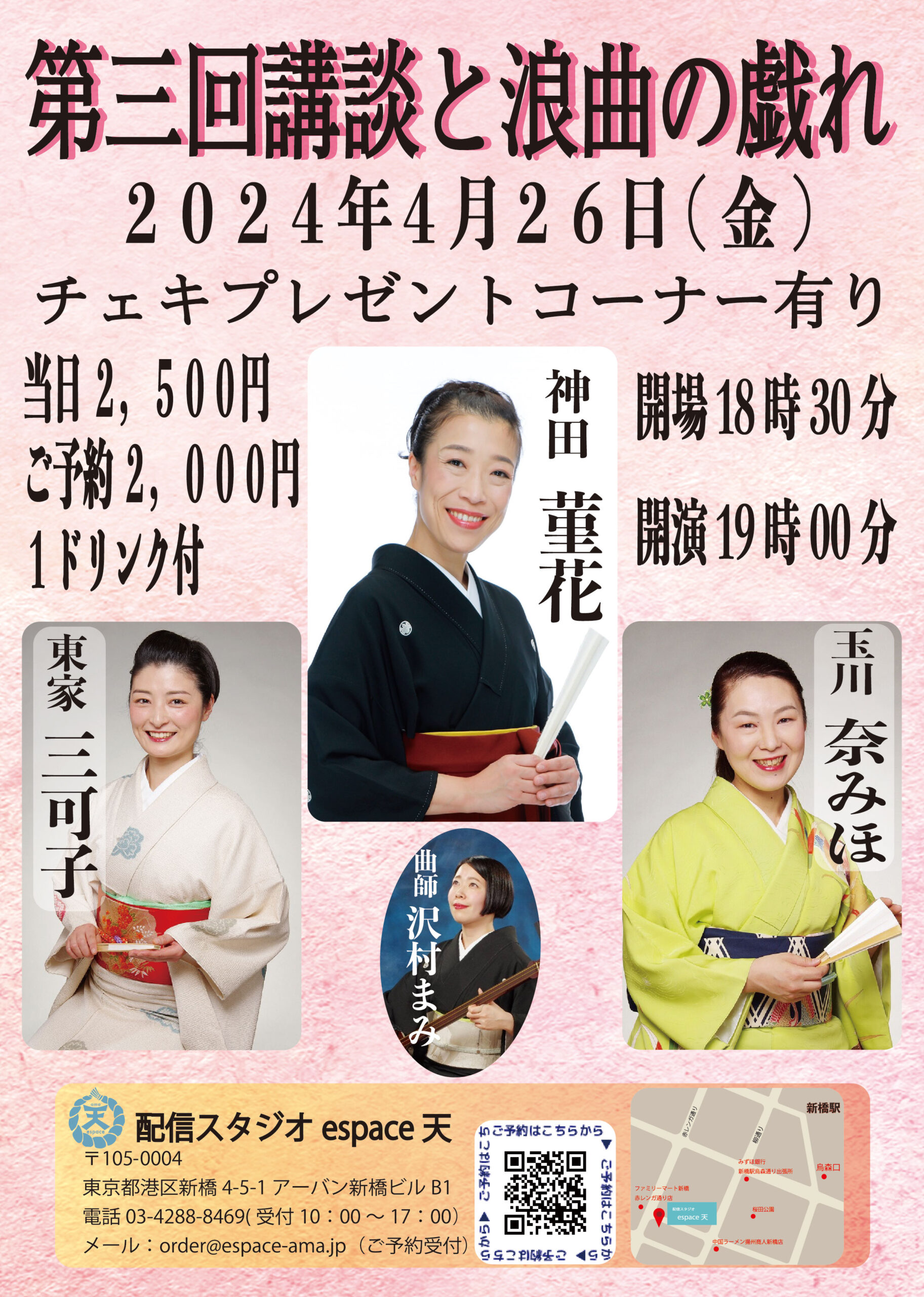 講談師 神田菫花と若手浪曲師 東家実可子と玉川奈みほが、お仕事帰りの疲れを講談と浪曲で癒や